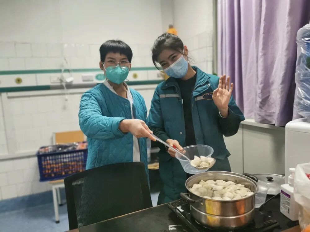 在送餃子的過程中,一位病人家屬說原本他還擔(dān)心沒法在家中過年會(huì)感到孤獨(dú),沒想到醫(yī)院里充滿了親情與溫暖。在這春節(jié)闔家團(tuán)聚的日子里,醫(yī)護(hù)人員還能為患者著想,這讓他非常感動(dòng)。醫(yī)院的領(lǐng)導(dǎo)和患者們一起過大年,讓他們并沒有因?yàn)槌Σ荒茉诩叶械竭z憾。