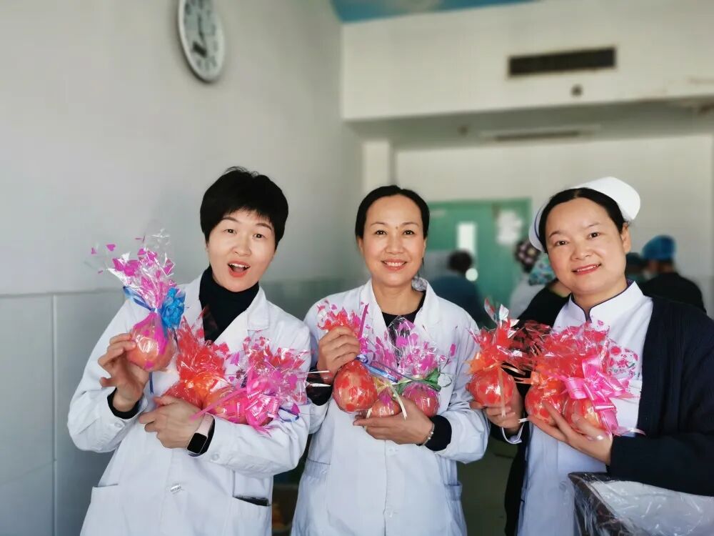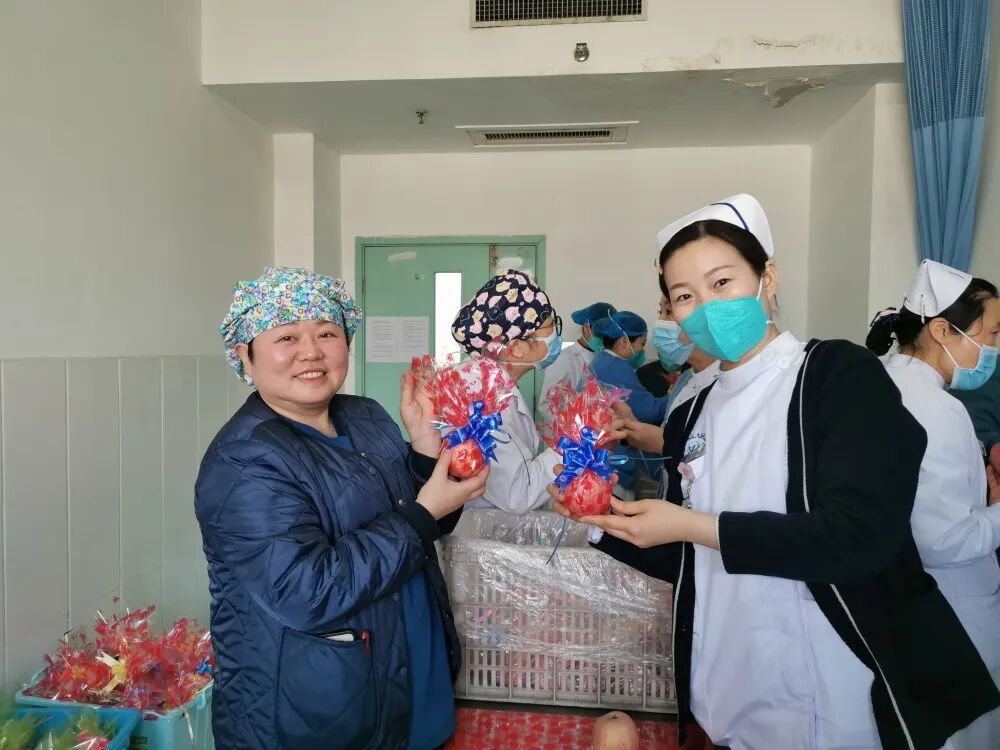 每年的這一天醫(yī)院都會(huì)組織職能科室人員為患者提前準(zhǔn)備拜年禮物-平安果。又大又紅的蘋果經(jīng)過大家的巧手裝扮,一個(gè)個(gè)穿上了漂亮的外衣,系上了五彩的蝴蝶結(jié),整整齊齊碼放在箱子里,等待著大年初一的到來。